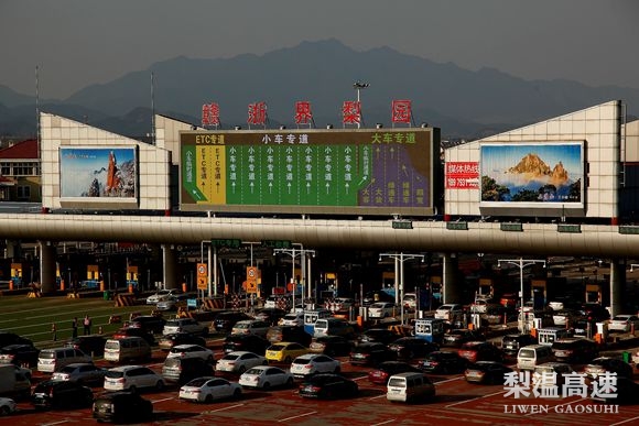 “声光电”保障法。声,四个高音扩放器,放置在广场150余米各处,不停播音:小车请进入专用车道,货车请进入超大车道……工作人员还配了四个手持式喇叭,形象的称这是“喊”春运……光,收费广场显示全部亮化。高杆灯,车道分流反光杆、临时收费指示反光牌。夜间灯火通明,照得整个收费仿佛是一个大生产车间……电,巨大LED电子显示屏,显示各种类型车进入方向,二百多米开外的车子都能看的清楚,起车流导向作用,为地方企业投资200余万支援的硬件设备。渠化分流法。春运之前,赣浙处在收费广场划出了区别车道,小车居中,大车靠右,同时设置限高栏杆,组织人员引导交通,组织车辆按导流渠方式行驶,一改以往混乱争抢状况。其中,交警人员给予充分协助,实现车行其道,据一名经过的李姓车主说,今年在梨园经过,感受最深的就是车辆通行明显井然有序了。