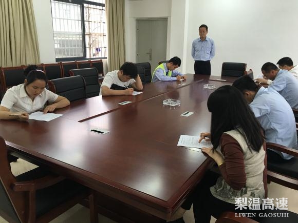此次考试全员参加,内容涵盖服务规范、职业规范、行为规范、收费基本知识、车道突发事件的应变能力等多方面的知识。为体现公平公正,采取闭卷考试形式,由收费站长出A、B卷试题并亲自监考。