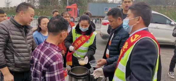 当天早上7时许,大雾仍然没有散去,随着入口封闭时间的推移,车道车辆渐渐增多,车主也逐渐失去等候的耐心,插队、下车随意走动和按喇叭催促现象时有发生。为了缓解司乘焦急情绪,该站紧急启动应急预案,党员示范班主动上前进行流动式服务, 一边向司乘解释封路原因,一边提供面条、开水,同时指挥车辆有序排队,提示司乘人员上车等候,并提供有效绕行行车指南。