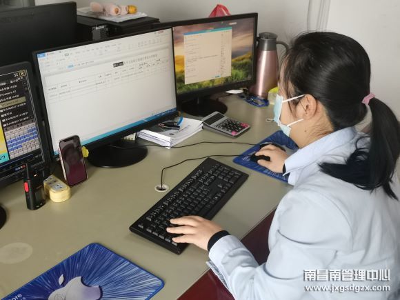 即便在跟家人打着视频电话,曹玲珍也不忘手中活,嘴中念叨着家长里短,手上却又快又好的完成稽核工作,噼里啪啦的键盘声连成一片。