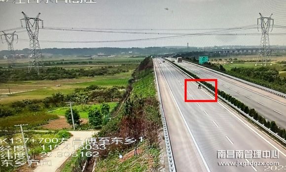 4月12日上午11时30分,南昌南管理中心信息分中心应急指挥室在视频巡查时,发现东昌高速公路(昌傅往东乡方向)K137公桩附近,有一辆电动车在超车道逆行,期间不时有车辆从他身边疾驰而过,情况十分危险。监测员发现后立即将情况告知所辖交警,并通过视频监控实时追踪电动车的行驶轨迹,将最新行驶情况上报。
