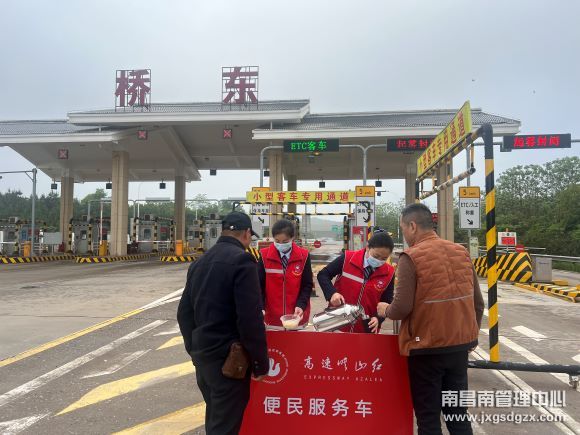 4月26日,由于大雾原因,南昌南管理中心桥东收费站接交警通知对收费站进行交通管制,司乘人员滞留在收费收费广场。