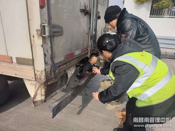 突然,一辆正在驶离车道的蓝色牌照货车引起了她的注意。在车辆带起的寒风中,那辆货车的后车牌正危险地晃动着——仅靠一颗螺丝支撑着,仿佛下一刻就要被狂风卷走。“车牌脱落上路,不仅是交通违法,更可能在颠簸中引发后方车辆事故,必须立刻处置!”黄林心头一紧,来不及多想,立刻一边用标准手势向司机发出警示,一边快步上前,引导车辆靠边,停入安全区域。
